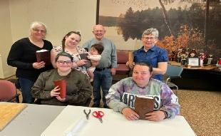 Bruderheim Ag Society put on a course in leather working with a qualified instructor and the end product turned out beautifully, a leather portfolio cover.